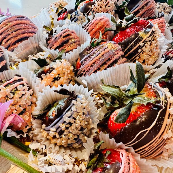 At Decadently Dipped, our chocolate-covered strawberries are more than just a treat—they are a work of art. Each hand-selected, ripe strawberry is dipped in the finest chocolate and meticulously decorated to create a visually stunning and indulgently delicious experience. From elegant drizzles and shimmering accents to intricate designs and vibrant colors, every detail is thoughtfully crafted to elevate each bite. Whether for a special occasion or a moment of pure indulgence, Decadently Dipped transforms chocolate-covered strawberries into a luxurious and unforgettable delight.
